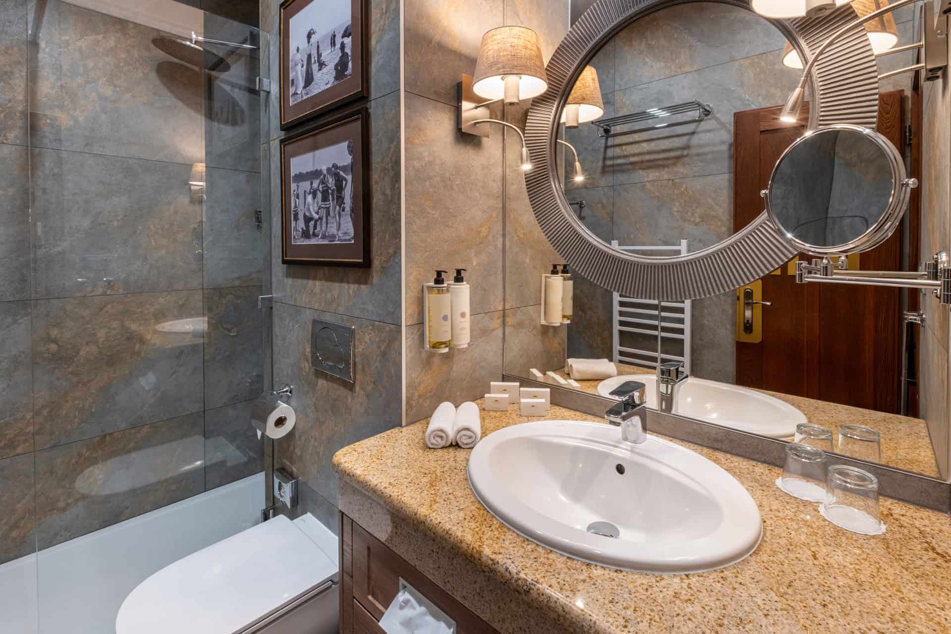 The Executive double room offers inimitable luxury, perfect relaxation and a pleasant rest after a hard day. The rooms in this category are fully equipped and decorated in warm, pleasant colors. Comfortable beds in the size of a “king size bed” will guarantee you a comfortable and undisturbed sleep with premium anti-allergic duvets and feather pillows. Treat yourself to a rest after a work meeting or tourist activities and fully enjoy the comfort offered by the Executive double room with an area of 18 to 25m2. The price for such a room is 94,00€ including VAT + 1,50€ local tax per night.